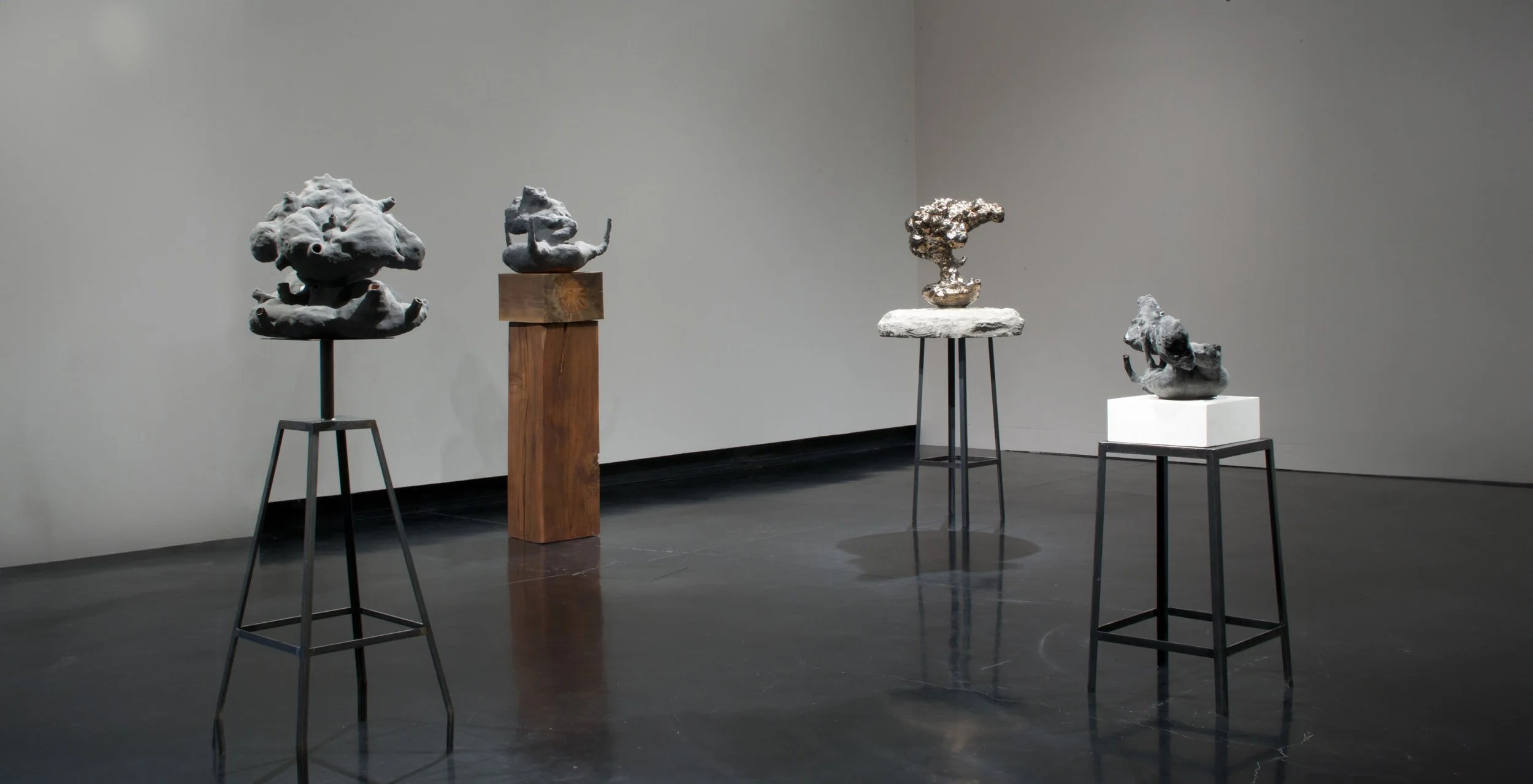 Arlene Shechet’s recent glazed ceramic objects float, twist, and puff-up atop stacks of unadorned concrete, plaster, wood, and steel. While Shechet has worked in sculpture for over two decades, these new works shift away from her earlier explorations of iconographic Buddhist imagery toward more abstract forms and combinations. Confounding any single reading, they hover in the fertile space between East and West, secular and sacred, and modern and ancient. Shechet’s modeled surfaces demonstrate how clay mirrors the artist’s touch. Her objects bear the mark and memory of her hands. The sculpture’s bulges, hollows, spouts, and holes evoke bodily features and, as the artist notes, are “suggestive of the curving forms found in classical Indian sculpture.”
