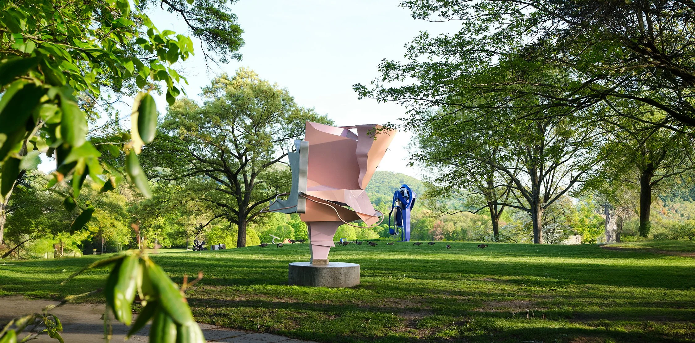 Arlene Shechet: Girl Group brings together the artist’s recent work in wood, steel, ceramic, paper, and bronze with six new monumental sculptures created for Storm King Art Center. Through her signature emphasis on process and improvisation, Shechet harnesses the expressive power of geometry, line, color, and form in works displayed across Storm King’s hills, fields, and galleries. The artist maintains a spirit of constant discovery as she mines the possibilities of multiple sculptural materials, experimenting with their capacity to hold color and light while creating form and volume.